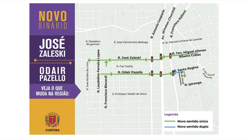 O bairro Capão Raso, ganha novo binário entre a rua José Zaleski e Odair Pazello. A alteração será válida a partir das 11 horas desta terça-feira (24). Para que a mudança possa ser feita, cinco ruas da região terão sentido de circulação modificado.