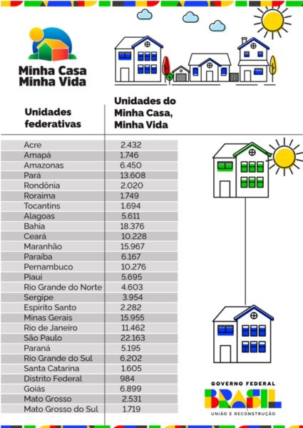 NACIONAL – No país inteiro, foram selecionadas 187,5 mil novas unidades habitacionais do MCMV para famílias da Faixa 1. São mais de 1.200 empreendimentos que beneficiarão 560 municípios nas cinco regiões e nas 27 Unidades Federativas. Do total, 184 mil unidades são destinadas a famílias integrantes dos cadastros habitacionais.