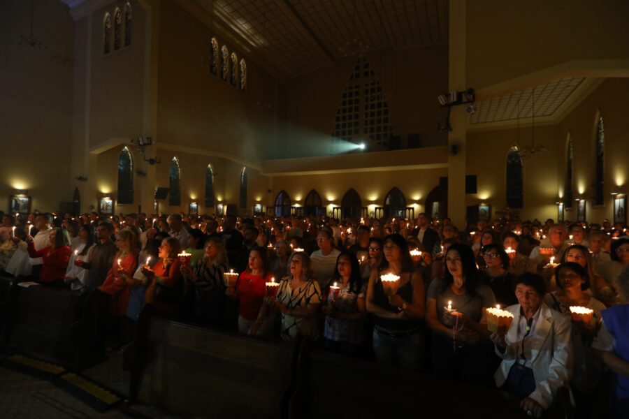O Sábado de Aleluia (19) terá início com a Bênção dos Alimentos, às 16h. A partir das 19h, os fiéis participam da Vigília Pascal, com a Bênção do Fogo e da Água — símbolos da renovação das promessas do Batismo. A Associação Evangelizar orienta que os participantes levem velas com proteção para a celebração.