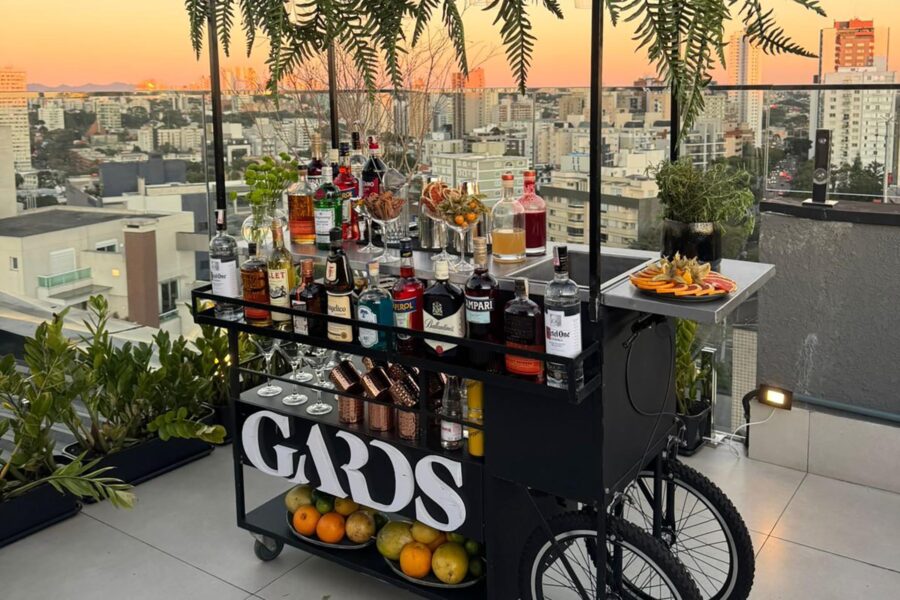 Empresa especializada na criação de alta coquetelaria para eventos, a Gards Bartender lança um novo formato de atendimento, com um estiloso carrinho de drinks. O bar sobre rodas é ideal para eventos de pequeno porte, até 50 convidados, agregando praticidade com visual descolado e a qualidade dos drinks do Gards. A empresa faz parte do grupo que também criou o premiado Gards Rooftop Bar, que recentemente entrou para a lista dos 100 melhores bares do Brasil da revista EXAME Casual.