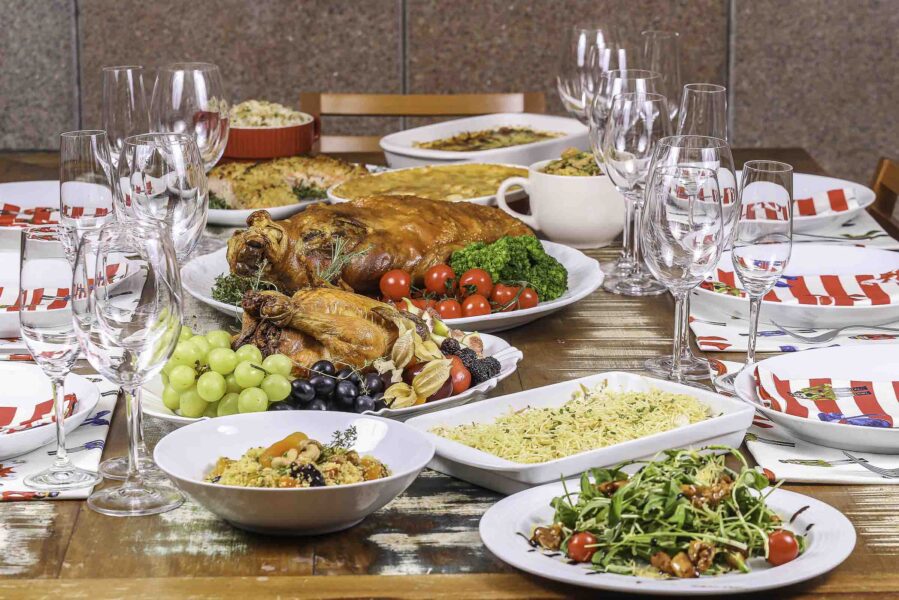Como acompanhamentos, há desde Arroz com amêndoas e passas até Couscous marroquino, empadões de palmito, frango e camarão, além de massas como Lasanha de carne e Conchiglione de queijo com camarões – todos vendidos por quilo, variando de R$ 129,90 a R$ 199,90.