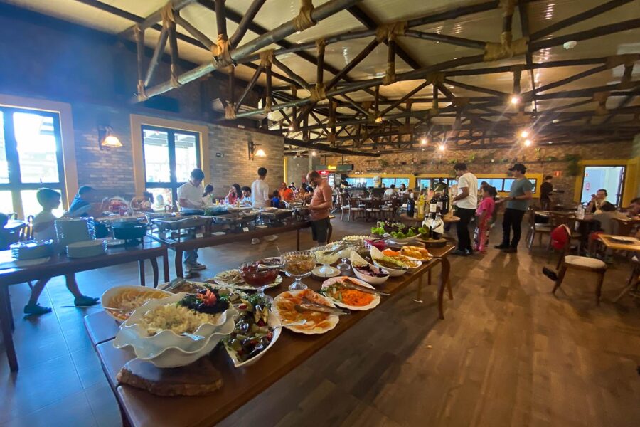 O almoço é outro atrativo da Vila Katu. Com gastronomia assinada pelo Buffet Marzia Lorenzetti, tem opções que vão de massas e carnes a saladas, acompanhamentos e sobremesas, no sistema buffet livre. Crianças de 3 a 10 anos pagam R$ 40, acima desta idade e adultos pagam R$ 80. Crianças de até 2 anos e 11 meses não pagam.