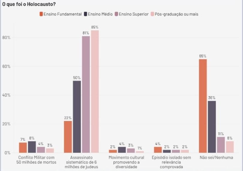 Os dados evidenciam que o conhecimento da população da região Sul sobre o Holocausto ainda é raso e desigual, indicando que, quanto menor o nível de escolaridade, maior é o desconhecimento ou a interpretação equivocada sobre o genocídio.