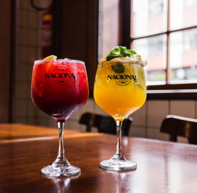 O segmento de drinks do Bar Nacional vai muito além da caipirinha. Este coquetel brasileiro por essência está entre as grandes especialidades da casa, mas dois clássicos internacionais também têm destaque especial na carta: Moscow Mule e Gin Tônica. Eles ganham releituras criativas e também descontos em noites especiais.