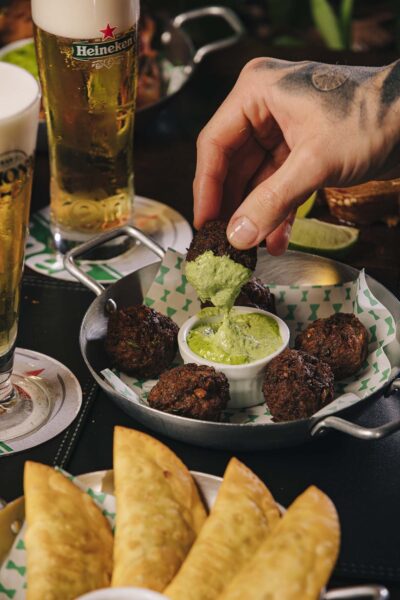 Uma instituição da gastronomia de boteco brasileira, os bolinhos estão entre os destaques nos petiscos do Bar Nacional. Nada mais justo, uma vez que a casa presta homenagem aos bares clássicos do país, nos quais um chope bem tirado, caipirinhas e comida saborosa fazem parte da programação. Desde o tradicional Bolinho de carne até o elaborado Bolinho de cupim com cream cheese, são cinco receitas criadas pelo chef João Gabriel Nunes para expandir as fronteiras gastronômicas e explorar novos sabores.